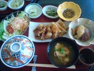 しかもこのセット、ご飯・肉・サラダ・汁物・豚肉のおかず・漬物2~3品で何と・・・、 600円!!安すぎる!! まだオープンして間もなくて、あまり宣伝もしていないようです。この他にも居酒屋を何件も経営されているようで ここだけは儲け度外視のお店らしいです。しかもこの日は俺・子供2人・両親・兄夫婦7人でお店は貸切状態。 ご飯をおかわりしたり、デザートにメロンが出てきたり、至れり尽くせりでした~!