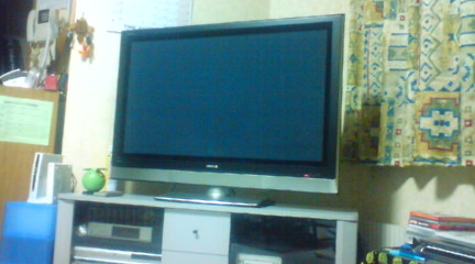 来ました!!プラズマTV 先週の金曜日に購入し、昨日の火曜日に納品!! とにかくでかいっす! 店頭で見たときは、両隣に50インチオーバーのTVが置いてあったので、 なんとなく小さく見えていたのですが、やはり設置してみると凄いっす!! 地上デジタル放送も綺麗に見られるし、データ放送もなかなか使える。 TV本体にHDDが250GB内蔵されているので、録画も簡単。 更に「IVポケット」という外付けのカセット型のHDDユニットをいくらでも増設できるという事で、 以前から持っていたHDDレコーダーは、ほぼ不要の状態。 まあ今まで録画したのを見る関係で繋いではありますが。 もう、アナログ放送と4:3のテレビには二度と戻れません・・・。 このプラズマTVの設置を機に、リビングまわりや寝室など 模様替えしていこうかと思うちょります。 |